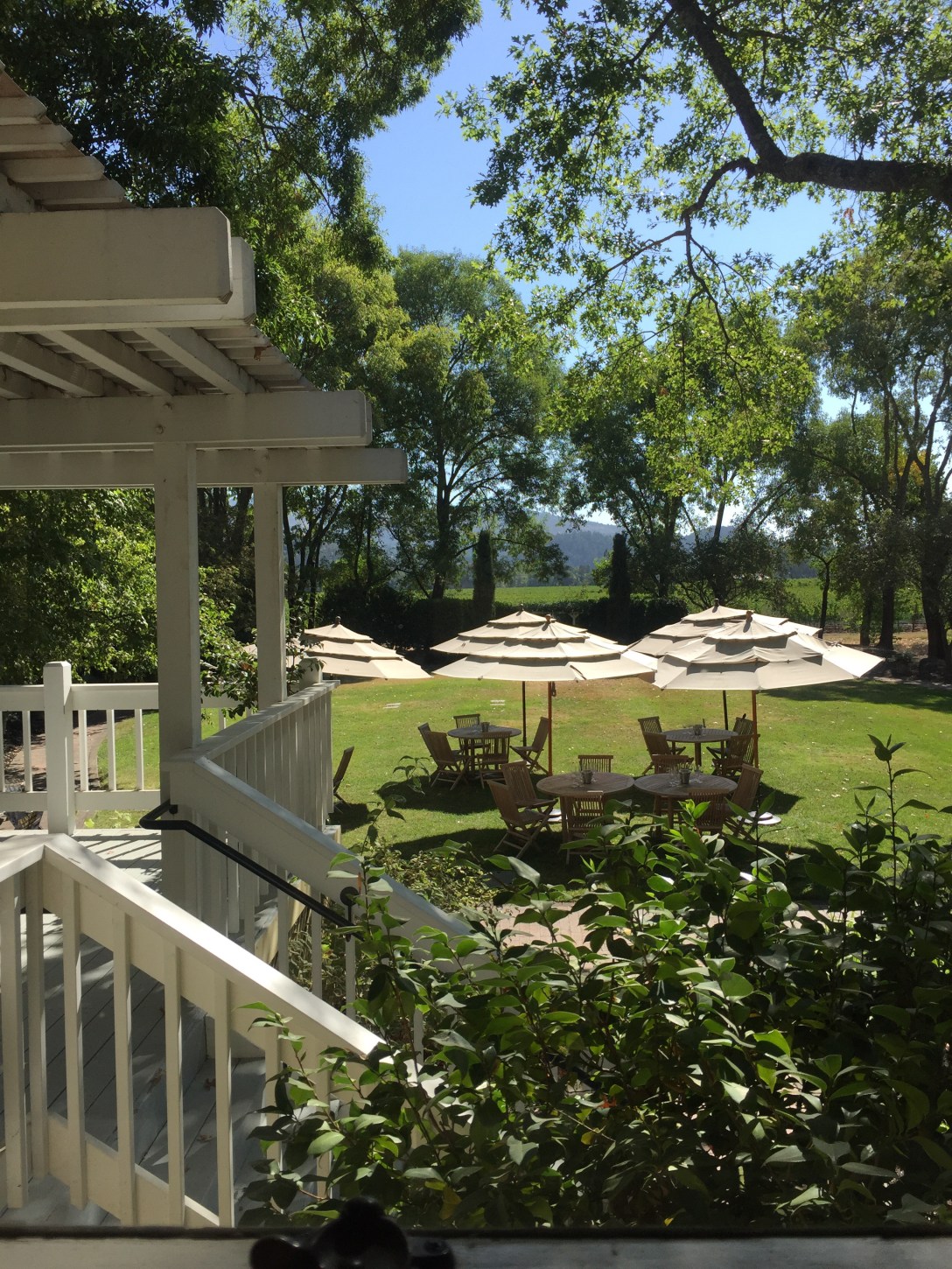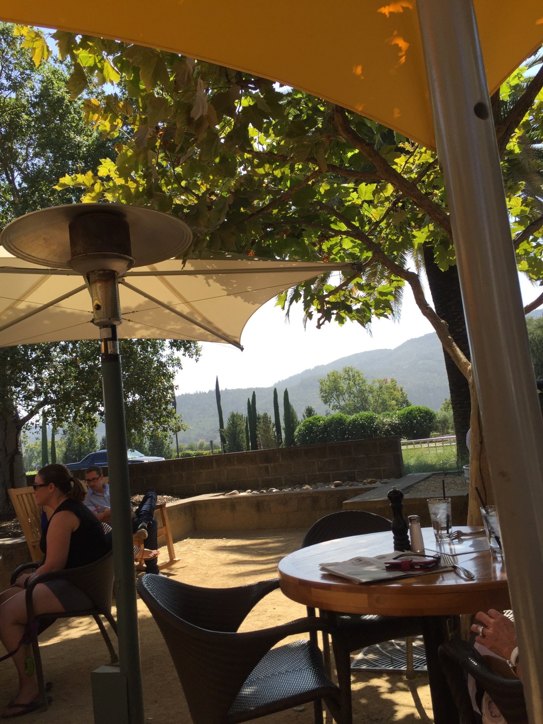 1:30 pm: After this vineyard, we requested another Uber and traveled to Rutherford Grill – request to sit on the patio – there are excellent views of the mountains.