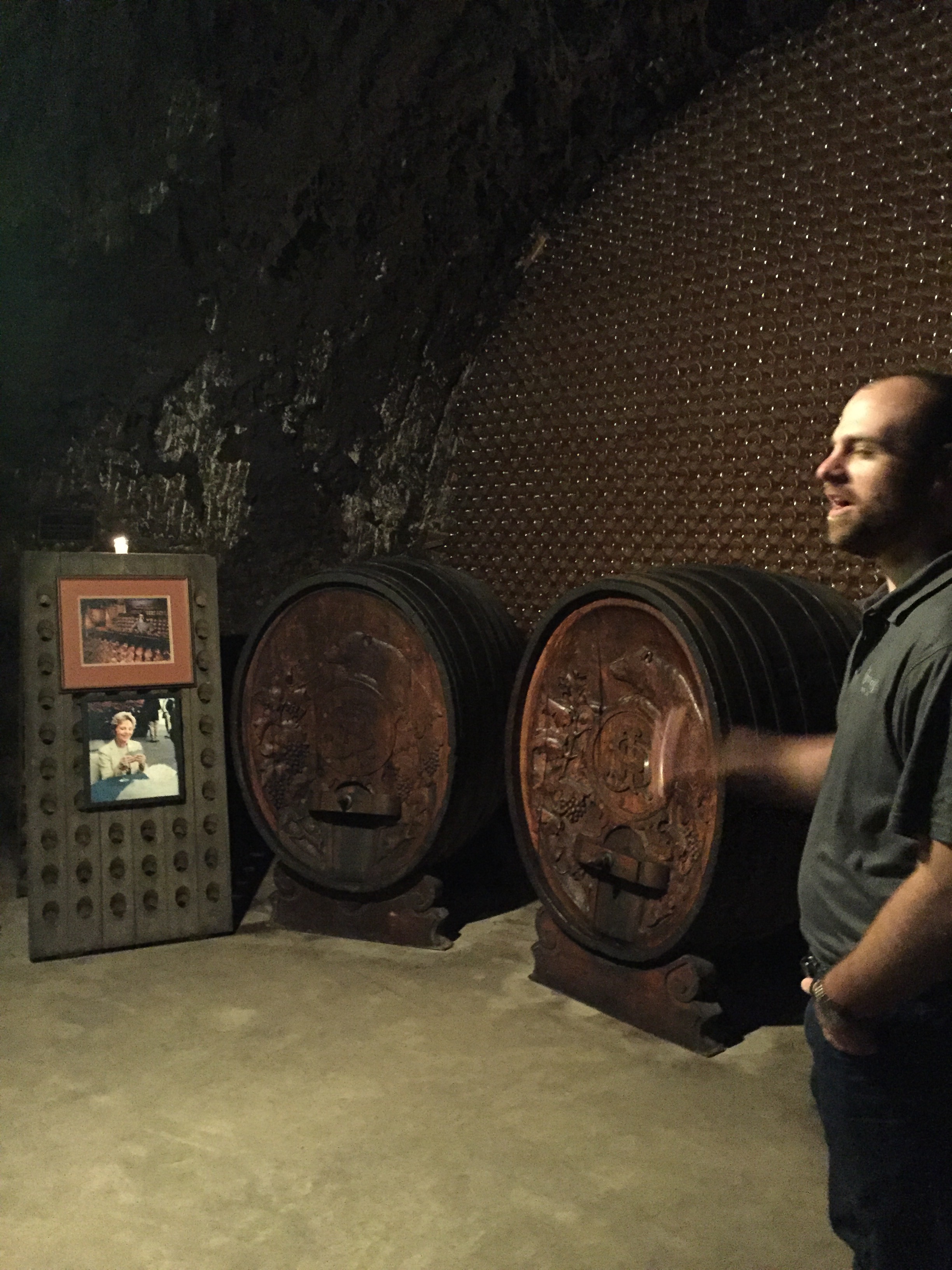 11:15 a.m.: We drove up a windy road to Schramsberg Vineyards nestled on the mountainside. We walked in and our tour began at 10:30. We followed our tour guide into a tunnel lined with thousands of bottles of wine! This vineyard specializes in sparkling wine so our tour guide explained the riddler (he turns each bottle of wine throughout the day to ensure sediment deposits move down to the neck of the bottle). I asked our guide about the caves and he said they meander about 2 miles throughout the mountainside and were hand-carved by picks decades ago. After learning about the wine process and history of the location and owners, we got to taste the wine while in the cave! With the backdrop of thousands of bottles of wine and a dozen candles, we were able to taste 5 different wines – 4 sparkling and 1 red wine. I loved all of the sparkling wines, but my favorite two were the Blanc to Blanc and the Brut Rose.